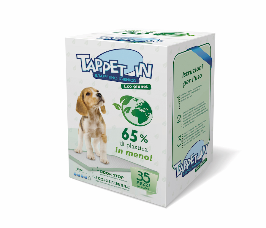 Igienici, super assorbenti e da oggi anche ecosostenibili. Il consorzio Digma lancia sul mercato Tappet In Eco Planet, una traversina per cani “green” attenta al Pianeta Terra. Grazie all’utilizzo di materiali eco compatibili e alla pratica confezione in cartone, Tappet In Eco Planet ha il 65% in meno di plastica rispetto al classico tappetino, senza però rinunciare ad efficacia e sicurezza. Sono disponibili 2 misure in confezioni da 35 pezzi: 60x60cm e 60x90cm. Per maggiori informazioni non esitate a contattare il vostro agente di zona.