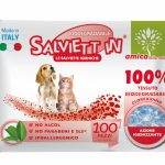 Il pack da 100 pezzi va quindi a completare la già ricca scelti di salviette igieniche Salviett IN che comprendeva il pack da 35 pezzi (30x20cm),i mini pacchetti (20x20cm) per pulizia occhi, pulizia orecchie ed igiene intima ed il pannoguanto (23x16cm).