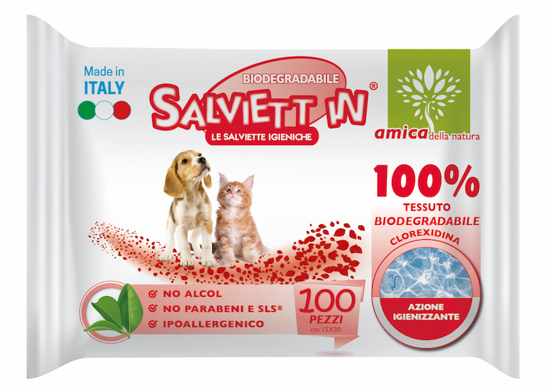 Il pack da 100 pezzi va quindi a completare la già ricca scelti di salviette igieniche Salviett IN che comprendeva il pack da 35 pezzi (30x20cm),i mini pacchetti (20x20cm) per pulizia occhi, pulizia orecchie ed igiene intima ed il pannoguanto (23x16cm).